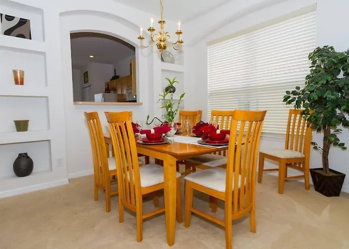 En la cocina completa hay un hervidor eléctrico, nevera y un horno, además de otros utensilios para cocinar, como servicio de tetera/cafetera. Se puede llegar al aeropuerto Internacional de Orlando en 45 minutos en coche. Los huéspedes pueden mantenerse en forma practicando ping-pong y billar y relajarse en una piscina exterior.